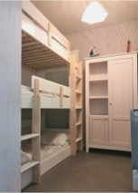 Le logement dispose d'une petite chambre avec des lits superposés, salle de bain et toilette indépendant.